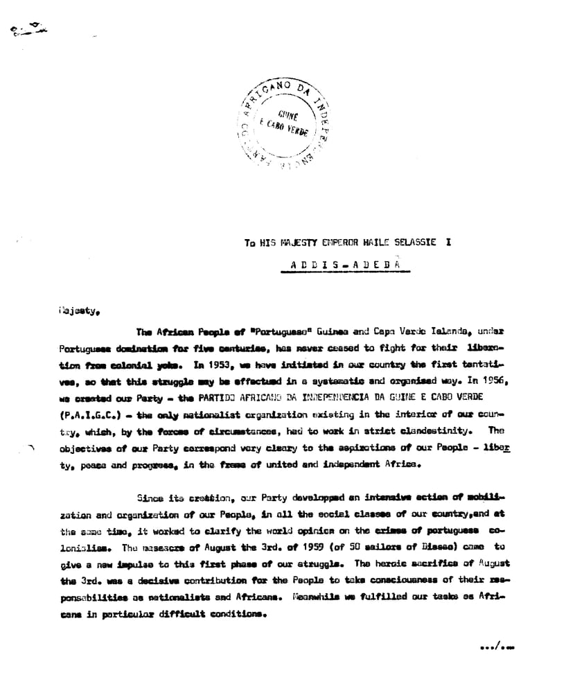 Terminamos com esperança, e remetemos esta mesma carta, desta vez aos responsáveis atuais da governação de Cabo Verde, que Amícal Cabral escreveu EM OUTUBRO DE 1962 para a sua Magestade Imperial, alinhando claramente com uma missão e principios para a Africa e a Humanidade, aquela com que saldou a sua própria vida no trágico dia 20 de janeiro em Guiné Conakri, o país cujo terreno estava minado de conspirações contra a Liberdade Fundamental do Homem Africano, conforme descrevedo com a todas as linhas no livro de factos reais intitulado: o Imperialismo e a sua Quinta colónia em Guinée (Agressão do 22 de Novembr de 1970)